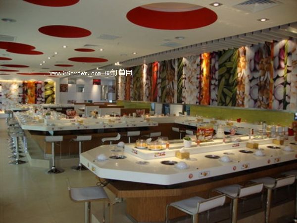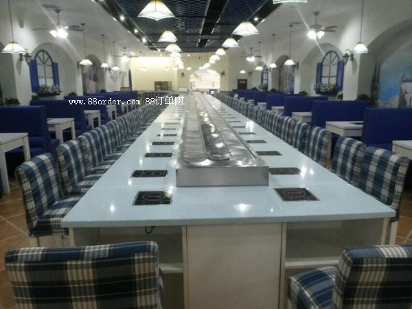旋轉(zhuǎn)吧臺,壽司料理,旋轉(zhuǎn)火鍋,自助火鍋餐廳。下架采30mm*30mm*1.5的碳鋼方管焊接而成,表面經(jīng)過防銹處理,所有連接部分均采用標準件連接,便于移裝。