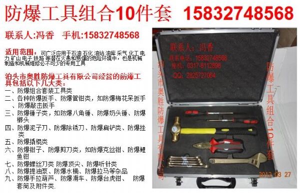 泊頭市奧勝防爆工具有限公司專業(yè)生產(chǎn)各種組合工具:ex-aswxty17/28/34/56防爆維修組合工具9件,防爆工具,特種工具,防爆人體靜電釋放器,靜電接地報(bào)警器,法蘭靜電連接片,法蘭靜電跨接線,防爆組合工具,防爆扳手,防爆梅花扳手,防爆呆扳手,防爆錘,防爆鉗,防爆漏斗,防爆油壺,防爆油桶,防爆石油工具組合,防爆天然氣工具,防爆防靜電安全帶,防爆計(jì)量工具,防爆棧橋工具,防爆無火花組合工具,防爆配電室組合工具,防爆銅工具組合,防爆維修組合工具,防爆檢維修工具組合,防爆電工工具組合,等以及各種石油石化組合專用工具,加油站天然氣專用工具,搶險(xiǎn)工具,各種環(huán)境作業(yè)工具。