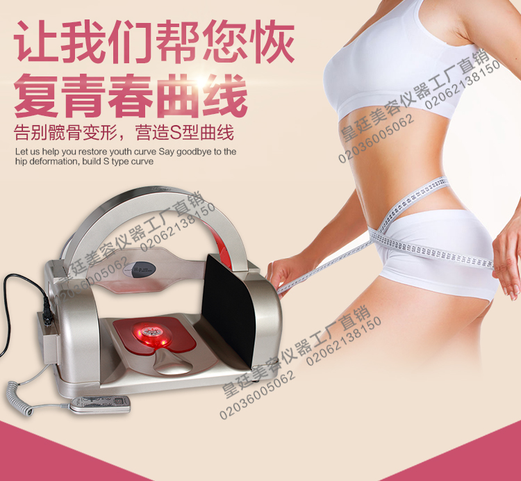 翹臀緊致:很多女性隨著年齡的增長臀部會下垂,是因為髖骨往外打開,使得臀部向外拉伸,導致臀部寬而下垂!绑y骨調(diào)理儀”的氣囊加壓,將骨盆及大腿根部兩邊的肌肉往里擠壓,這時會感到臀部開始緊致提升,臀部自然的上升。