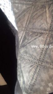 該鋁膜面料第一層鋁膜pe水刺布,中間是無膠棉,里層是無紡布