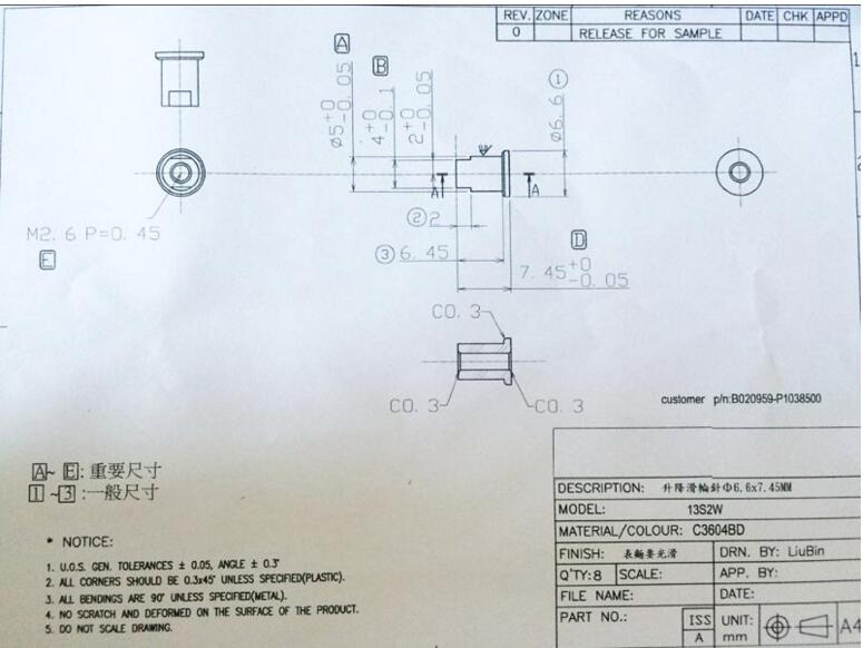 description:φ6.6*7.45mm material:c3604bd