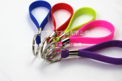 硅膠鑰匙扣,兩款logo已印好。硅膠鑰匙扣顏色鮮艷,無(wú)銹鋼扣環(huán)。