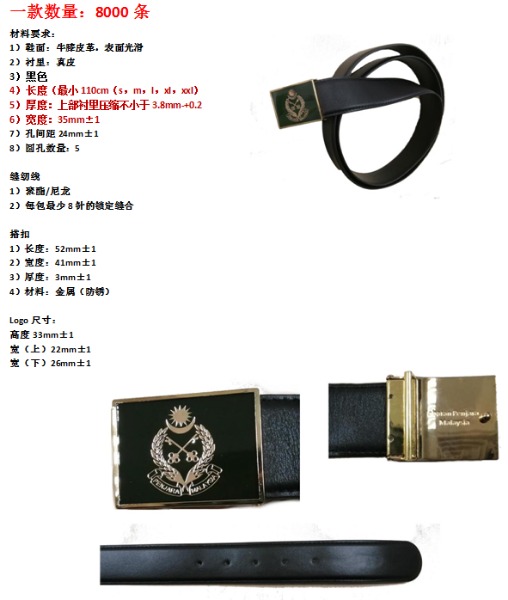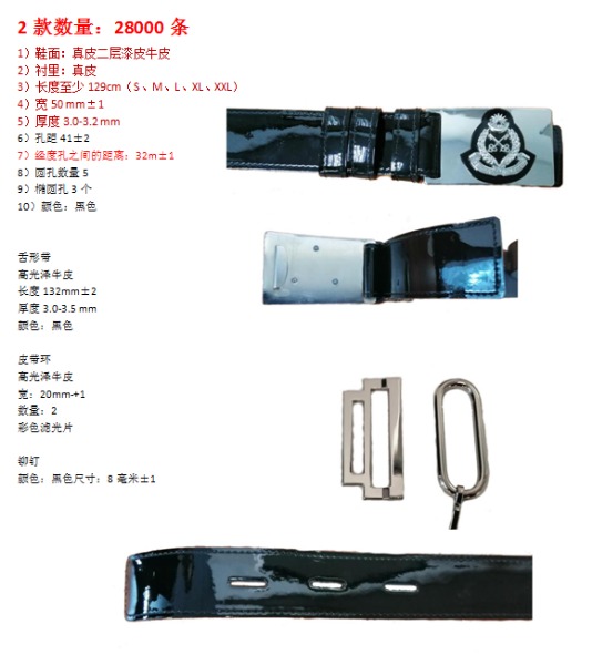 要求規(guī)格:1.腰帶(1和2個孔)。天然皮具有黑色光澤(皮革)清真動物來源(無豬皮)