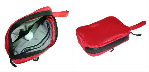 如圖所示紅色高爾夫球小袋 尺寸20cm長*13cm寬*5.5cm厚 滌綸格紋面料 滌綸里布有拉鏈內(nèi)袋