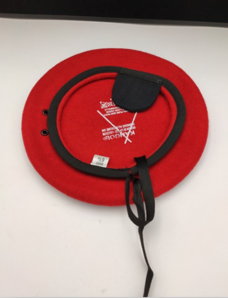 貝雷帽內(nèi)無里布,絲印白色logo 正面有兩個(gè)雞眼孔(用于扣徽章)