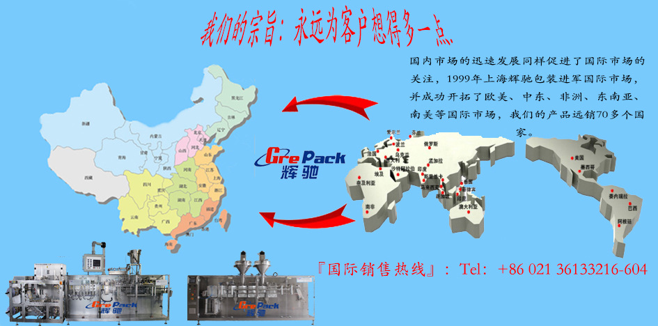 上海輝馳包裝設(shè)備有限公司,原名上海益佳包裝設(shè)備有限公司,成立于 1996 年,是集研究、開發(fā)、生產(chǎn)為一體的專業(yè)包裝設(shè)備制造企業(yè),公司引進國外先進 技術(shù),研制開發(fā)先進的灌裝機系列、貼標機系列、鋁箔封口機和水平式包裝機等.我們的產(chǎn)品在食品、藥品、農(nóng)化、日化、電子等不同的領(lǐng)域廣泛應(yīng)用,并且已銷往70多個國家,客戶遍布世界各地。