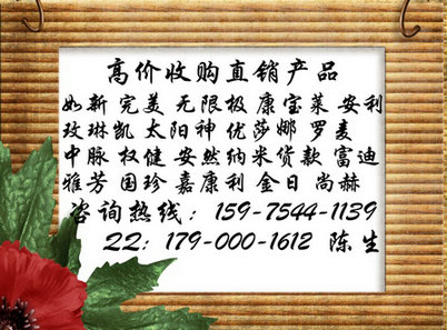 尊敬客戶(hù)因?yàn)樯?jí)刷業(yè)績(jī)而囤積大量如新、無(wú)限極、完美、康寶萊產(chǎn)品。另外還收購(gòu)優(yōu)莎娜、中山完美、康寶萊、羅麥、天獅、安利、寶健、太陽(yáng)神、玫琳凱、中脈、富迪等國(guó)內(nèi)外直xiao產(chǎn)品。如有壓力使資金無(wú)法周轉(zhuǎn),需要急而出手的!量大的,全國(guó)各地均可shang門(mén)收購(gòu)。歡迎致電咨詢(xún)159-7544-1139咨詢(xún)qq179-000-1612陳生。