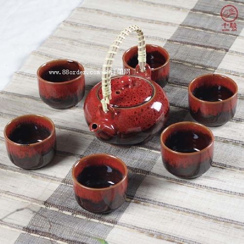 7頭陶瓷窯變茶具大提梁壺禮品套裝